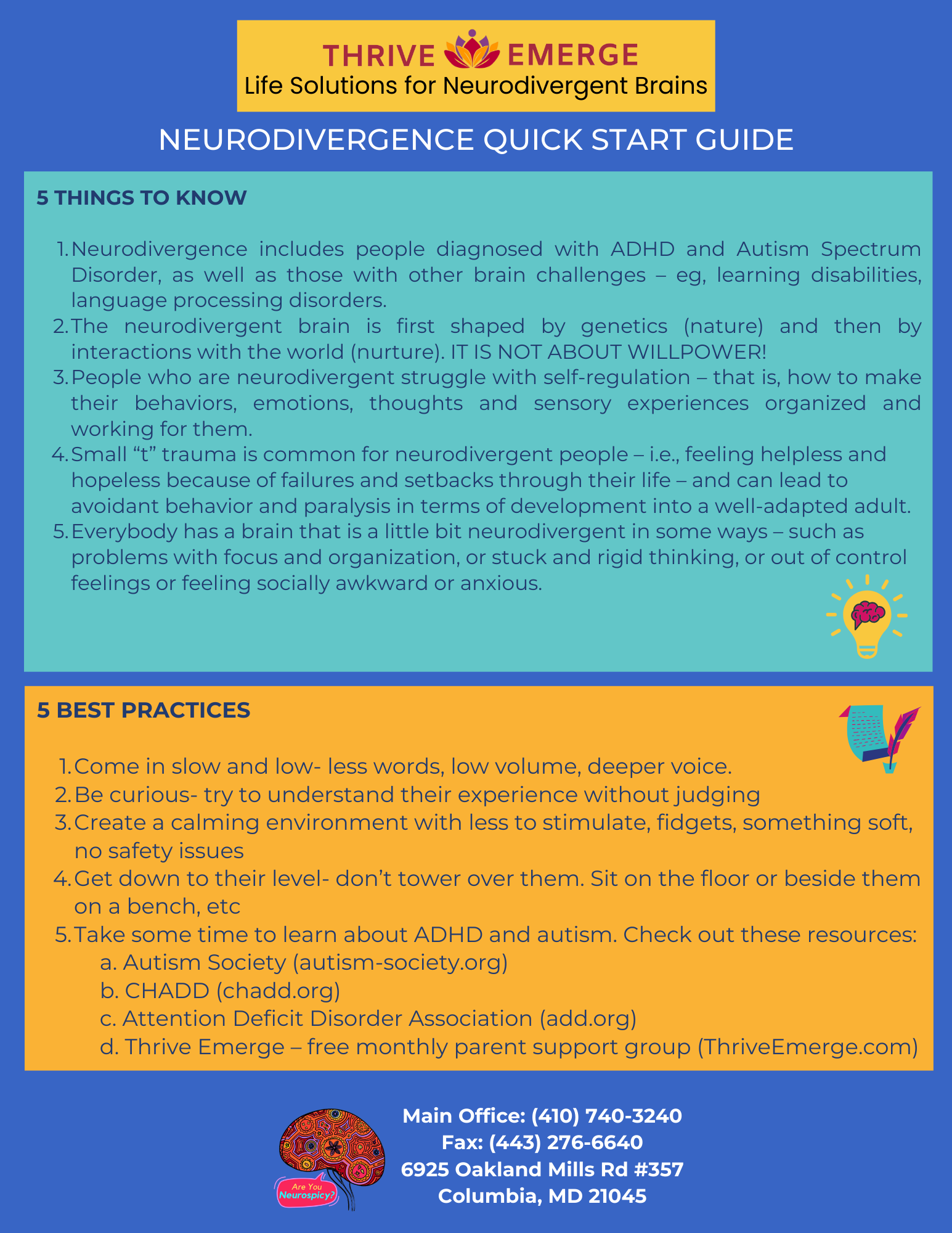 Here’s an excerpt from one of our QuickStart Guides that helps newcomers to neurodivergence start thinking about key issues.